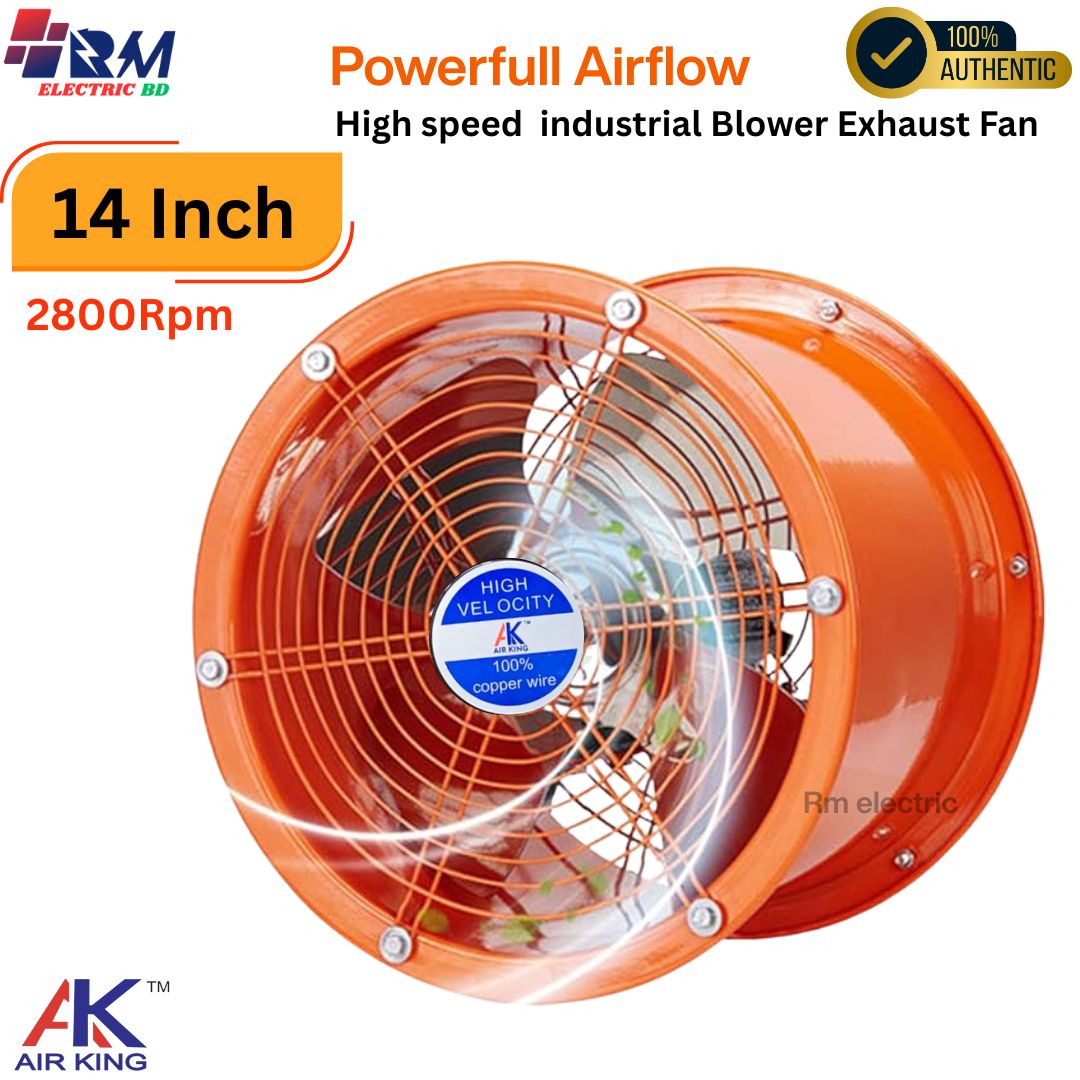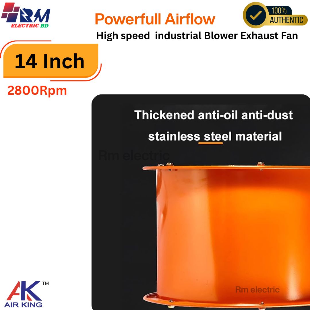 High Speed Exhaust Fan Stainless Steel Blade 14″ Blower Booster Fan 14 inch Powerful Fan with Double Ball Bearing Motor